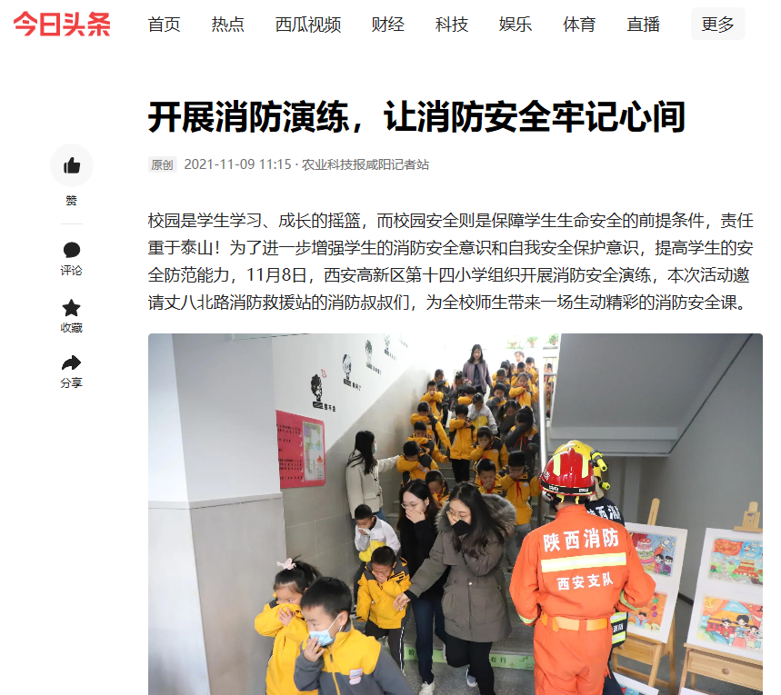 高新十四小历来高度重视安全宣传和教育工作,在119消防宣传日即将来临之际,高新十四小组织本次活动不但增强了师生的安全防范意识,更加激发了学生对于消防员的崇敬与热爱之情,取得了良好的教育效果。