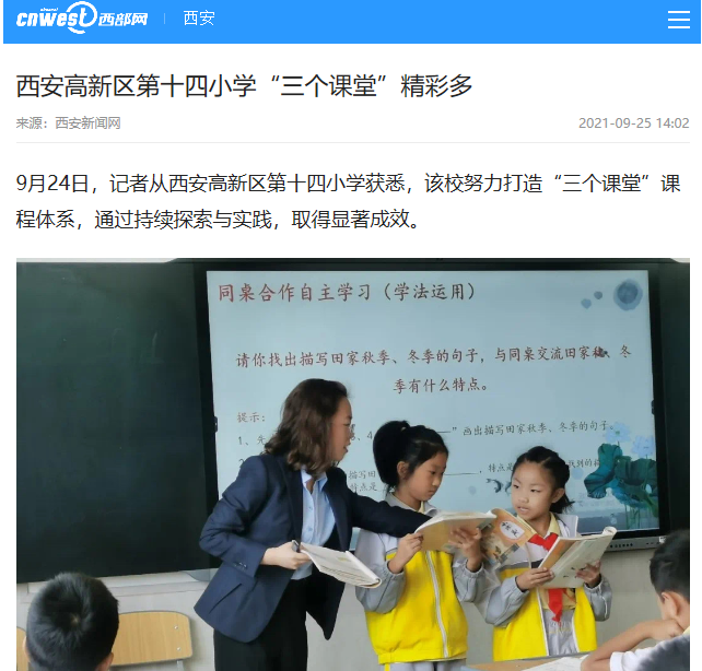 西安发布讯 9月24日,记者从西安高新区第十四小学获悉,该校努力打造“三个课堂”课程体系,通过持续探索与实践,取得显著成效。
